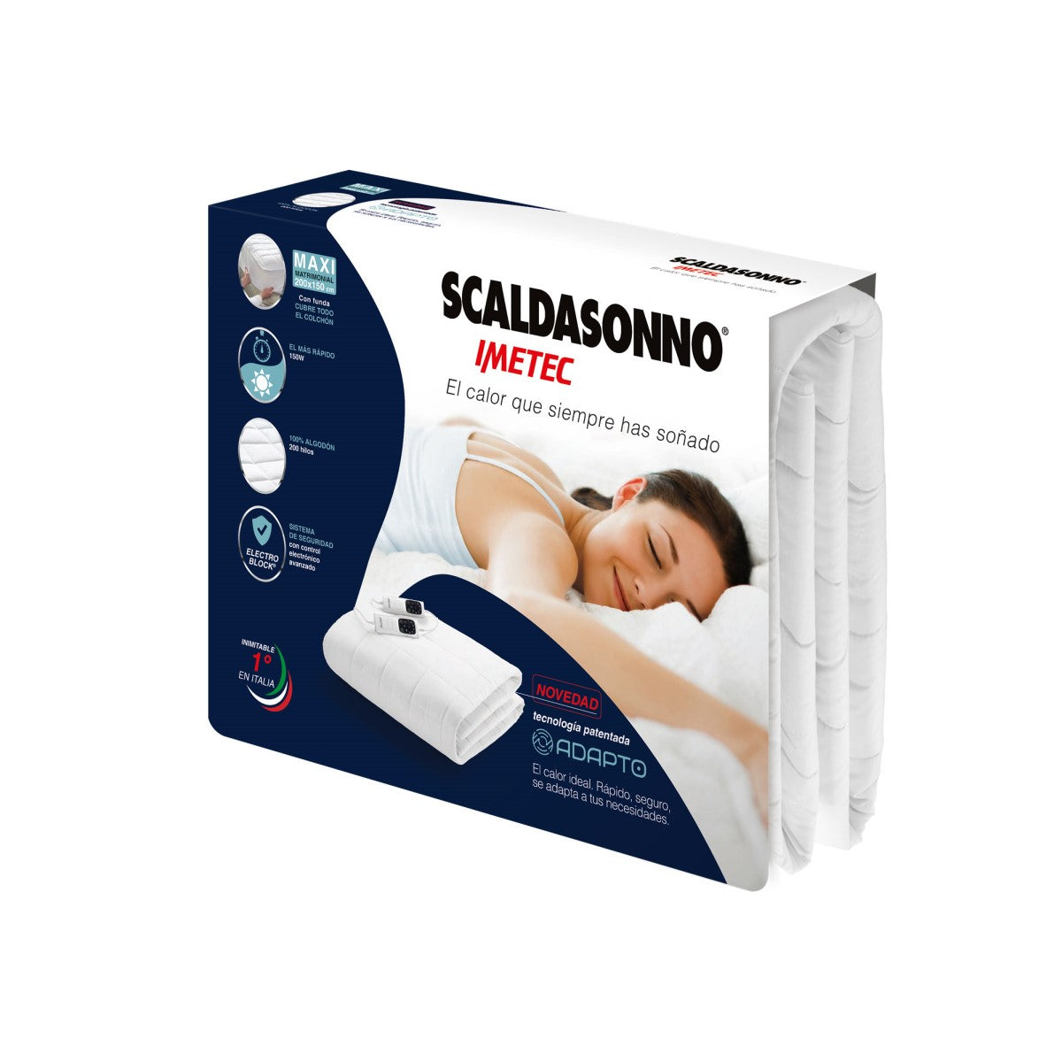 Scaldasonno Maxi te asegura un descanso óptimo con la máxima comodidad: cubre toda la cama y se ajusta perfectamente al colchón, ya que se fija como un cubrecolchón, sin moverse nunca.